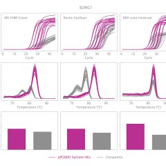 qPCRBIO SyGreen Mix có thể được sử dụng để định lượng một cách đáng tin cậy bất kỳ mẫu DNA nào bao gồm trình tự bộ gen, cDNA và virus bằng cách sử dụng qPCR dựa trên thuốc nhuộm và có thể phát hiện các mục tiêu có số lượng bản sao cực thấp với hiệu quả cao nhất.